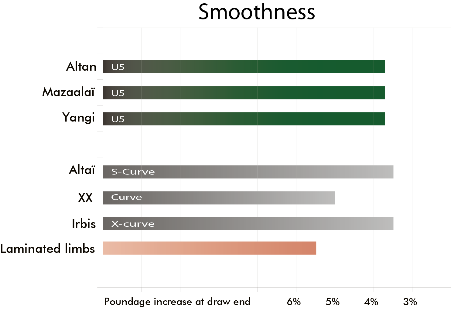 Smoothness of U5 limbs is nearly equivalent to our previous S-Curve range, with a power increase of just over 3.5% at draw end.