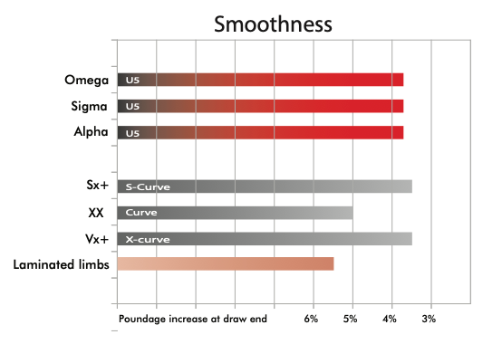 Smoothness of U5 limbs is nearly equivalent to our previous S-Curve range, with a power increase of just over 3.5% at draw end.