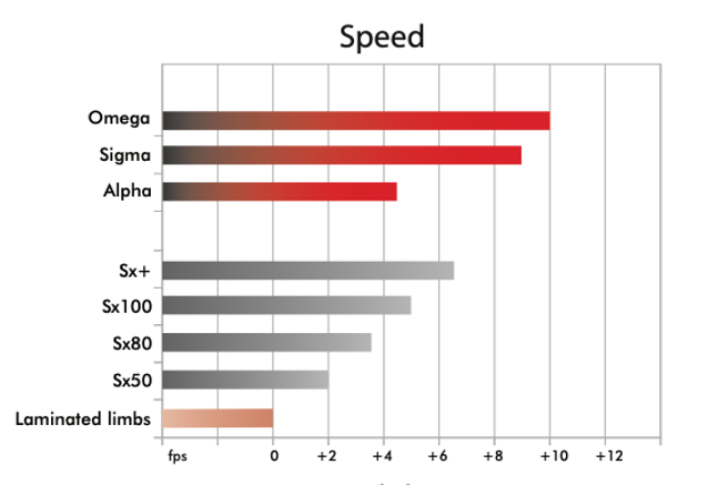 To achieve an equivalent speed, you would need to draw up to 4# more with other limbs on the market.