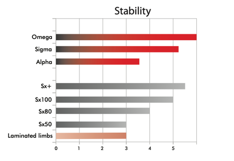 Every archer seeks stability which allows consistent arrow grouping. Stability comes from limbs’ torsional stiffness. This acts at two levels: first, if your limbs resist torsion, it will be very difficult to apply torque to the riser, and your bow will remain in line; second, when the arrow accelerates, nock travel will be straigther resulting in better grouping.