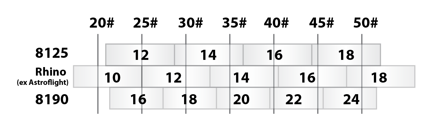 The chart indicates the number of strands we advise, depending on the weight measured at your draw length and the string material.